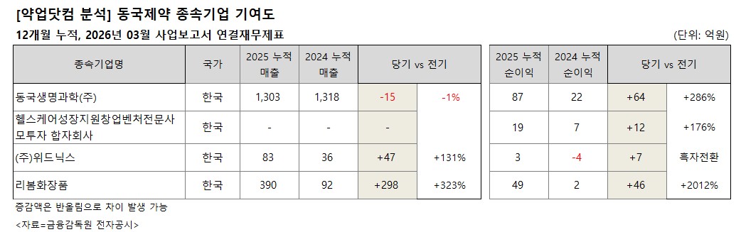 동국제약 종속기업 가운데 화장품과 헬스케어 관련 기업의 성장세도 나타났다.