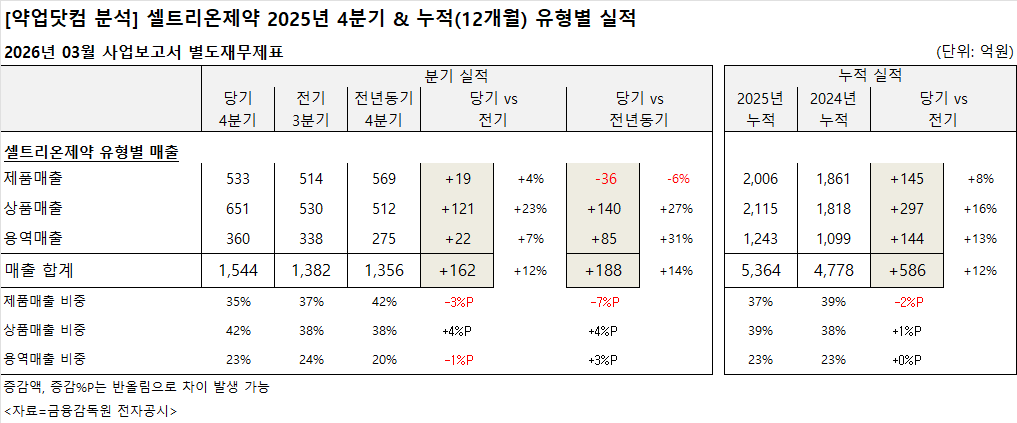 셀트리온제약은 매출 성장과 수익성 개선이 동시에 나타났다. 상품매출 확대를 중심으로 매출 구조 변화가 이어졌고, 재무지표에서는 차입 부담 완화 흐름도 함께 확인됐다.
