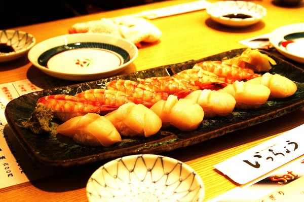 주문한 에비(Ebi - 새우), 호타테(Hotate - 관자의 일종) 초밥.