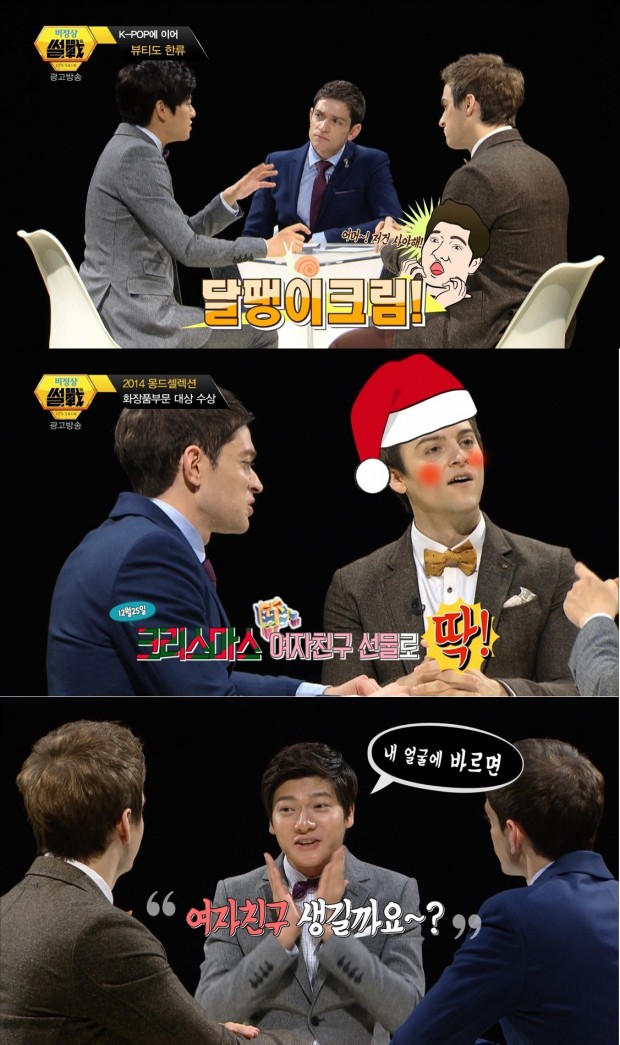 어색한 듯 열심히 ‘썰전’의 메인 MC 김구라를 흉내낸 독 다니엘의 진행으로 시작된 ‘비정상 썰전’에서 장위안은 중국 여자들 사이에서의 ‘달팽이크림 열풍’을 언급했다. 특히 캐나다인 기욤 패트리는 크리스마스 여자친구 선물로 딱이라며 얼굴을 붉혀 웃음을 자아냈다. 우리말이 어렵지만 자신 있게 뷰티 한류에 대해 열변을 토론하는 이 영상은 다름 아닌 잇츠스킨 ‘달팽이크림’의 색다른 광고 영상인 것.