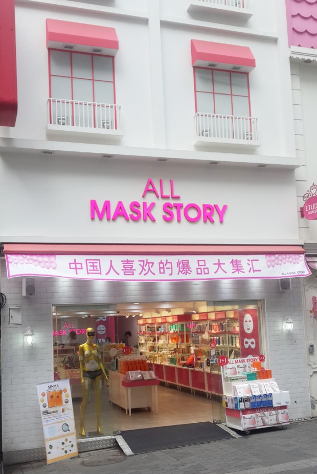 중국 소비자들이 유달리 마스크팩을 선호하면서 명동에 마스크팩 전문 매장까지 등장했다. 지난해 2월과 9월에 각각 문을 연 로열스킨과 올마스크스토리는 명동 화장품 상권의 새로운 강자로 부상하고 있다. 이미 4개 매장을 운영 중인 로열스킨은 자사 브랜드 마스크 시트 외에 중국인들에게 인기가 높은 마유 크림, 달팽이 크림, 알로에 젤 등을 취급하며 세를 넓히고 있으며, 명동에서의 인기를 바탕으로 해외 시장 진출에 박차를 가할 방침이다.