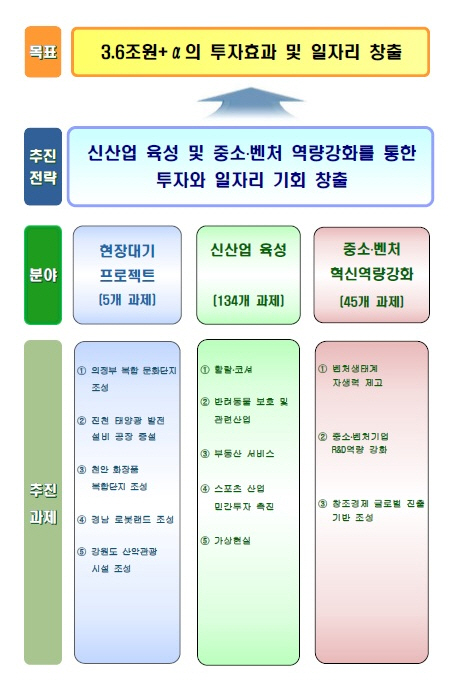 한편, 이번 ‘투자활성화 대책’은 △현장대기 프로젝트 5개 과제 △신산업 육성 135개 과제 △중소·벤처 혁신역량강화 45개 과제로 이뤄져 있다.