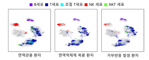 그 결과 면역관용 환자는 면역억제제를 복용하는 환자 혹은 거부반응 발생 환자와 면역 세포 분포와 유전자 발현 양상에 큰 차이가 있음을 확인했다.