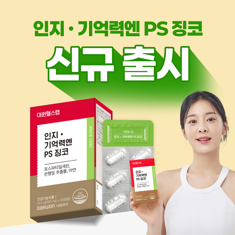 대원제약(대표 백승열)은 건강기능식품 브랜드 ‘대원헬스랩‘에서 ‘인지·기억력엔 PS 징코‘를 새롭게 선보인다고 4일 밝혔다.