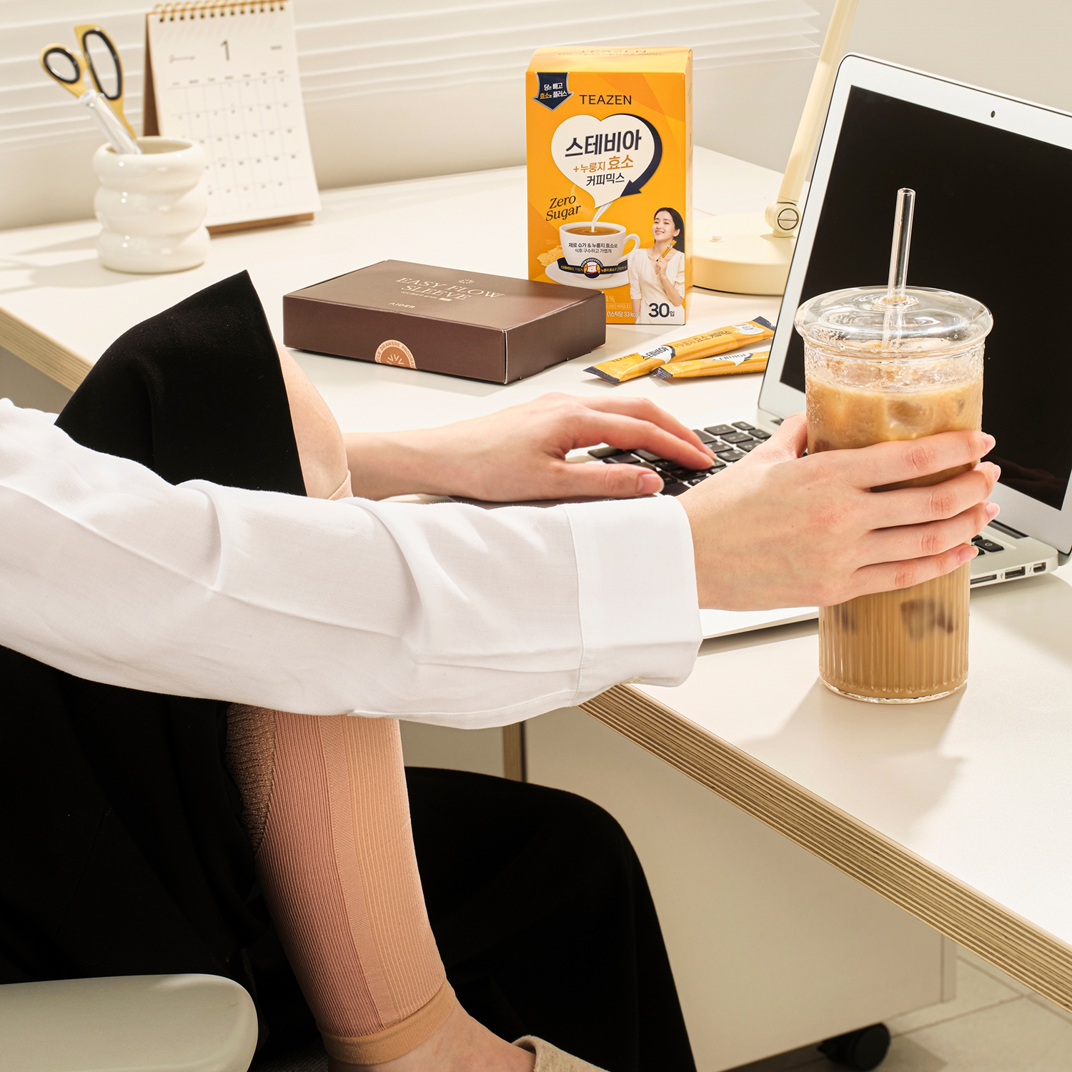 ‘티젠 탕비실 세트’는 직장인들이 회사 티타임 때 선호하는 제품들로 구성했다. 당류 제로로 건강하게 수분을 보충할 수 있는 콤부차를 비롯해 부동의 탕비실 1순위 품목인 스테비아 누룽지효소 커피믹스도 역시 당류 제로 제품으로 준비했다. ‘티젠 스테비아 누룽지효소 커피믹스’는 설탕은 빼고 효소를 더해 보다 건강하게 식후 커피를 즐길 수 있는 제품이다.