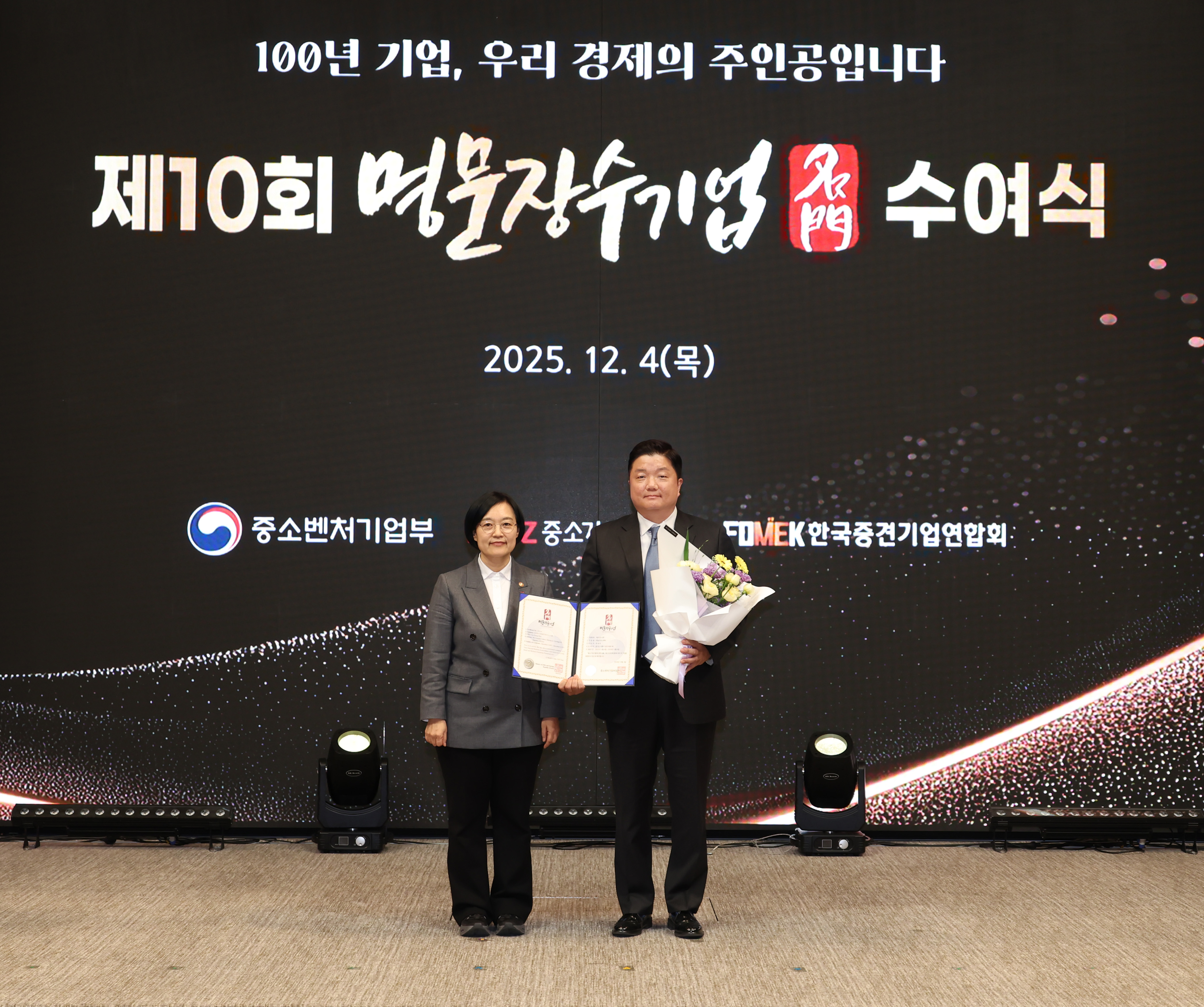 수여식에는 한성숙 중소벤처기업부 장관과 김기문 중소기업중앙회장, 명문장수기업 관계자 및 가족 등 약 100명이 참석했다. 한 장관은 “오랜 시간 위기를 극복하며 경제의 토대를 지켜온 명문장수기업은 앞으로 100년을 이어갈 기업”이라며 “기술 혁신과 기업 승계 같은 중요한 과제를 정부도 적극 지원해 성장할 수 있도록 돕겠다”고 말했다.