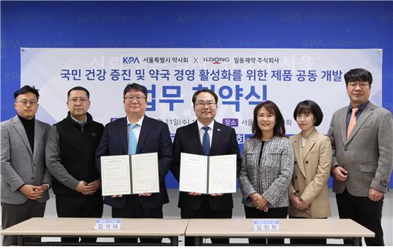 서울특별시약사회(회장 김위학) 건강기능식품위원회(부회장 우경아·위원장 김아름·박대섭)는 지난 21일 일동제약(대표이사 윤웅섭·이재준)과 약국 전용 건강기능식품 공동개발을 위한 업무협약을 체결했다.