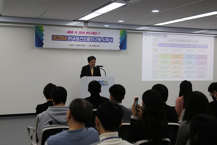 한국보건의료연구원(원장 이재태)은 지난 6일 열린 시무식에서 ‘국민 건강을 지키고 보건의료 미래를 선도하는 전문연구기관’이라는 새 비전을 선포했다고 밝혔다.