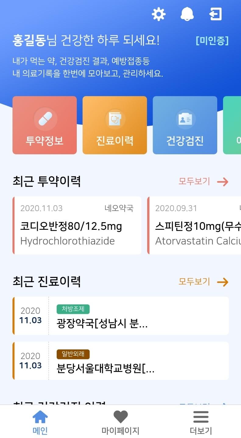 또한 마이 헬스웨이 플랫폼 구축 전에도 국민이 개인 건강정보의 활용가능성을 실제 피부로 체감할 수 있도록, 공공기관 건강정보를 스마트폰으로 조회‧저장‧활용할 수 있는 ‘나의건강기록’ 앱(안드로이드용)을 지난 2월 24일 출시한 바 있다.