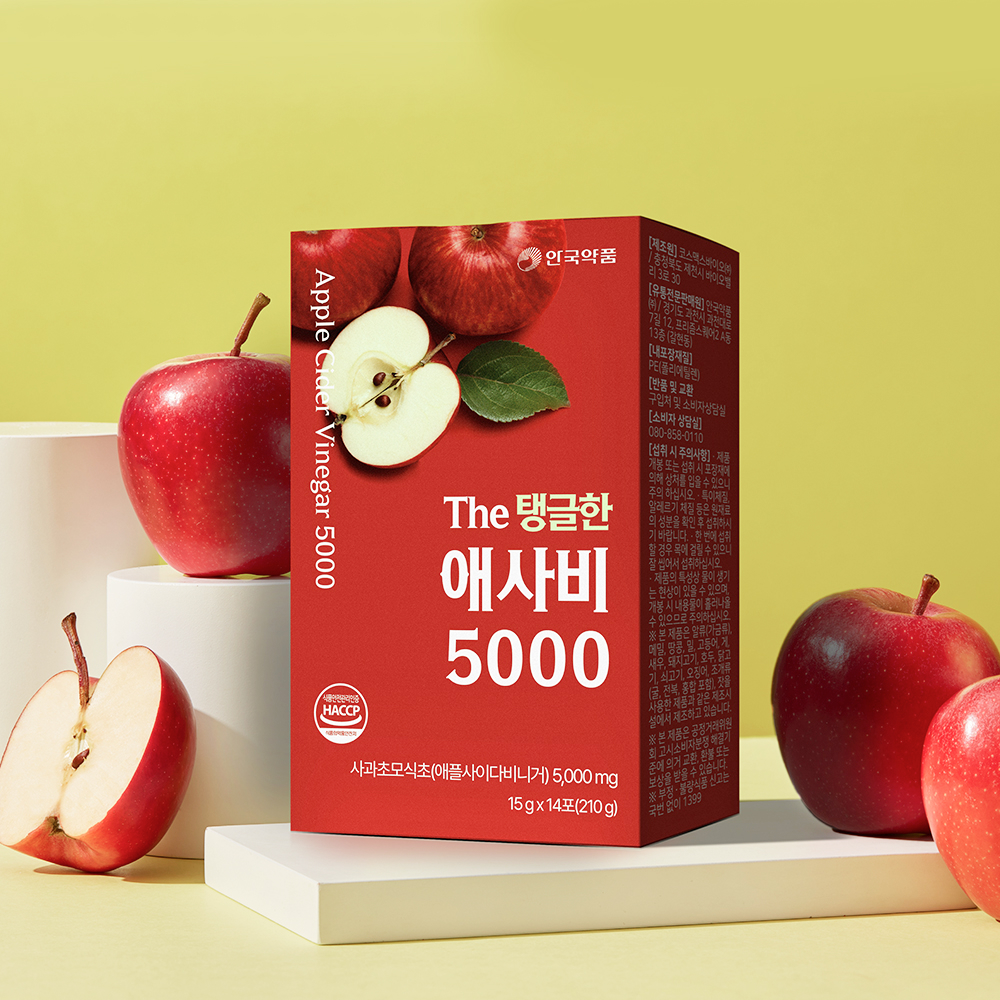 안국약품은 국내산 프리미엄 사과를 자연 발효한 사과초모식초 (애플사이다비니거)를 주원료로 한 건강식품 ‘The 탱글한 애사비 5000’ 젤리를 출시했다