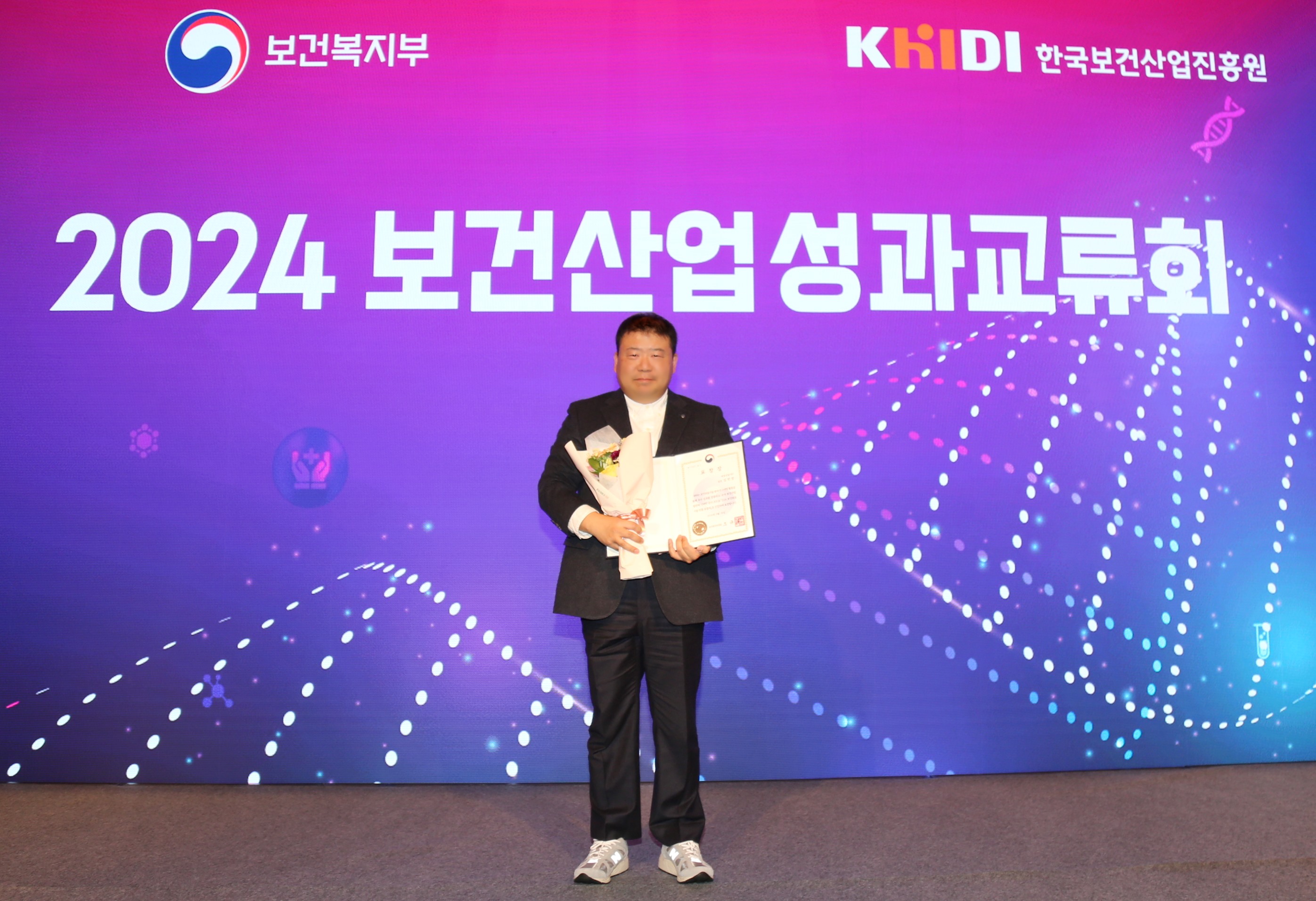 애경산업 화장품연구소 뷰티융합연구팀 김한영 연구원이 28일 오전 포시즌스호텔 서울에서 열린 ‘2024 보건의료기술진흥유공자 정부포상’ 시상식에서 ‘보건복지부장관 표창’을 수상했다.