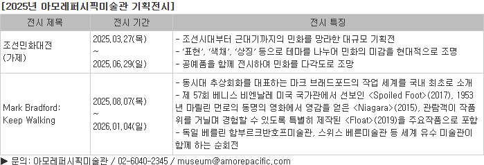 아모레퍼시픽미술관이 2025년에는 아모레퍼시픽 창립 80주년을 기념해 한국 전통의 고미술과 세계적 거장의 현대미술 전시를 선보인다고 19일 밝혔다.