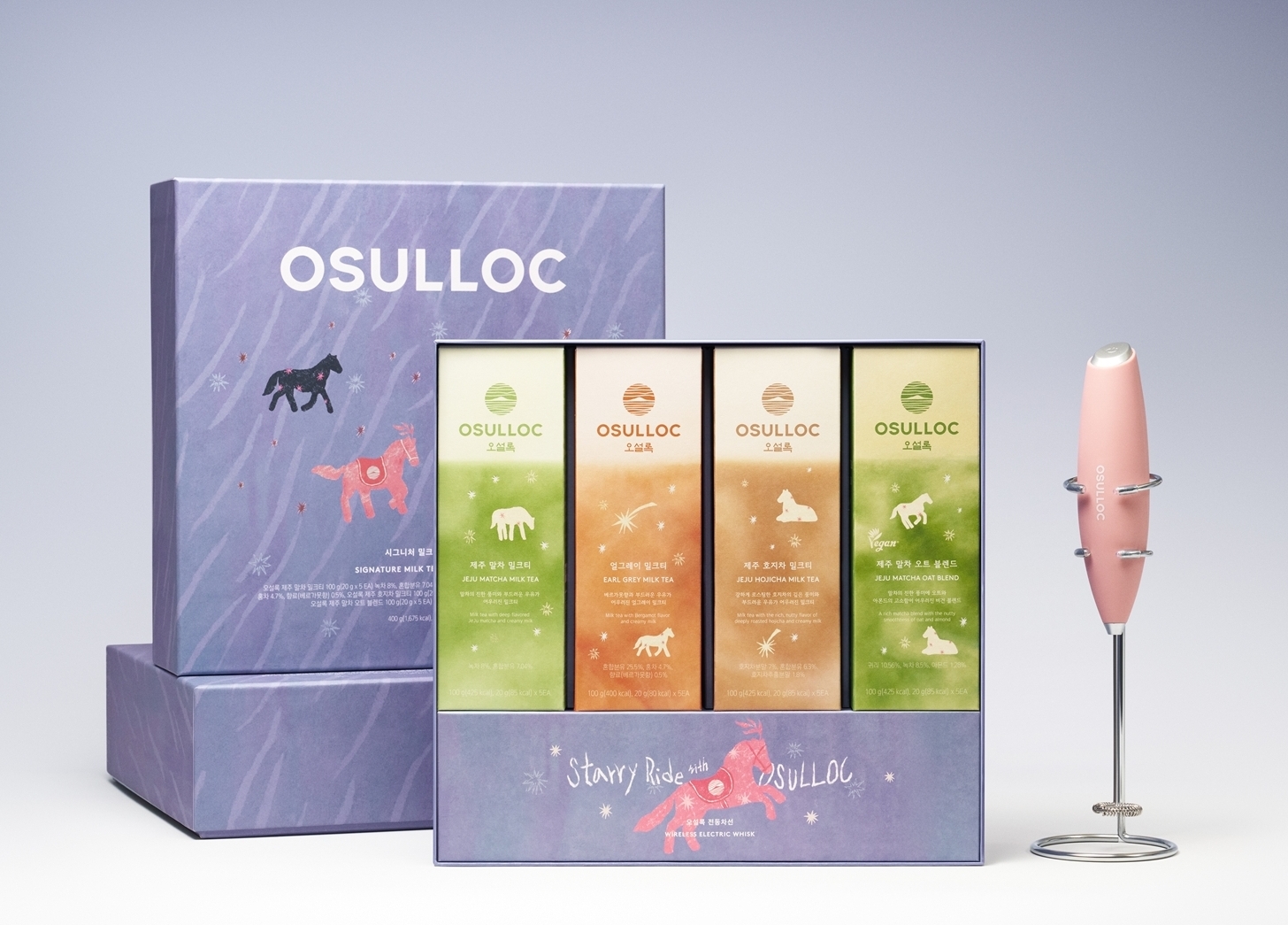 이번 컬렉션은 일러스트레이터 이한 작가와 협업해 제주의 밤하늘과 차밭을 모티프로 디자인했다. 구성은 △제주 말차 밀크티 △제주 호지차 밀크티 △얼그레이 밀크티 △제주 말차 오트 블렌드 등 4종이며 전동차선을 함께 포함했다. 오설록 밀크티는 우유 없이 물만으로도 간편하게 우려 마실 수 있는 것이 특징이다.