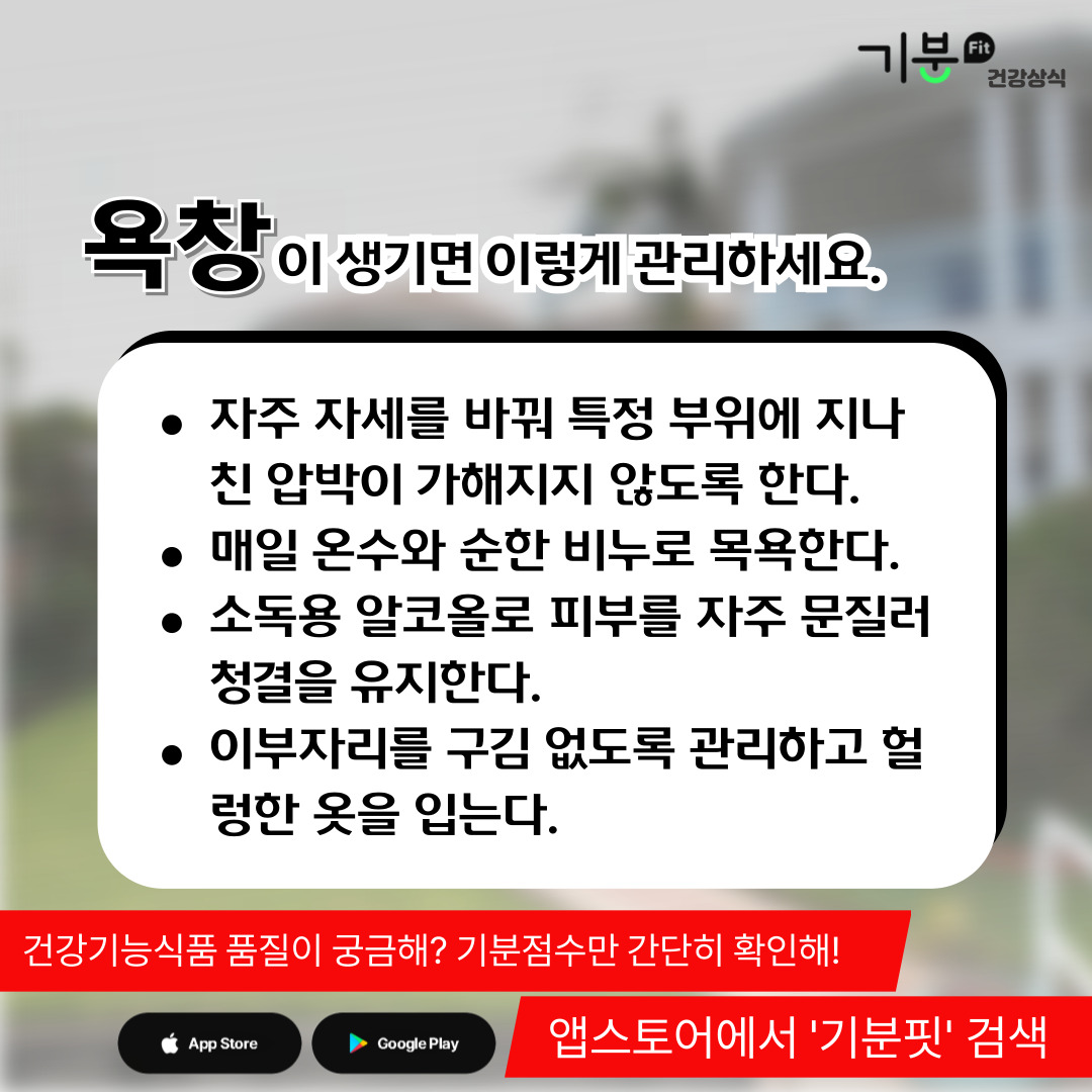욕창이 심해지면 조직제거가 필요할 수도 있으므로 주의해야 한다.