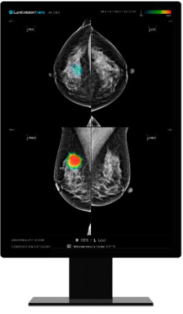 AI는 각 유방에 0부터 100까지의 점수를 부여하는데, 점수가 높을수록 유방암 가능성이 높음을 의미한다.