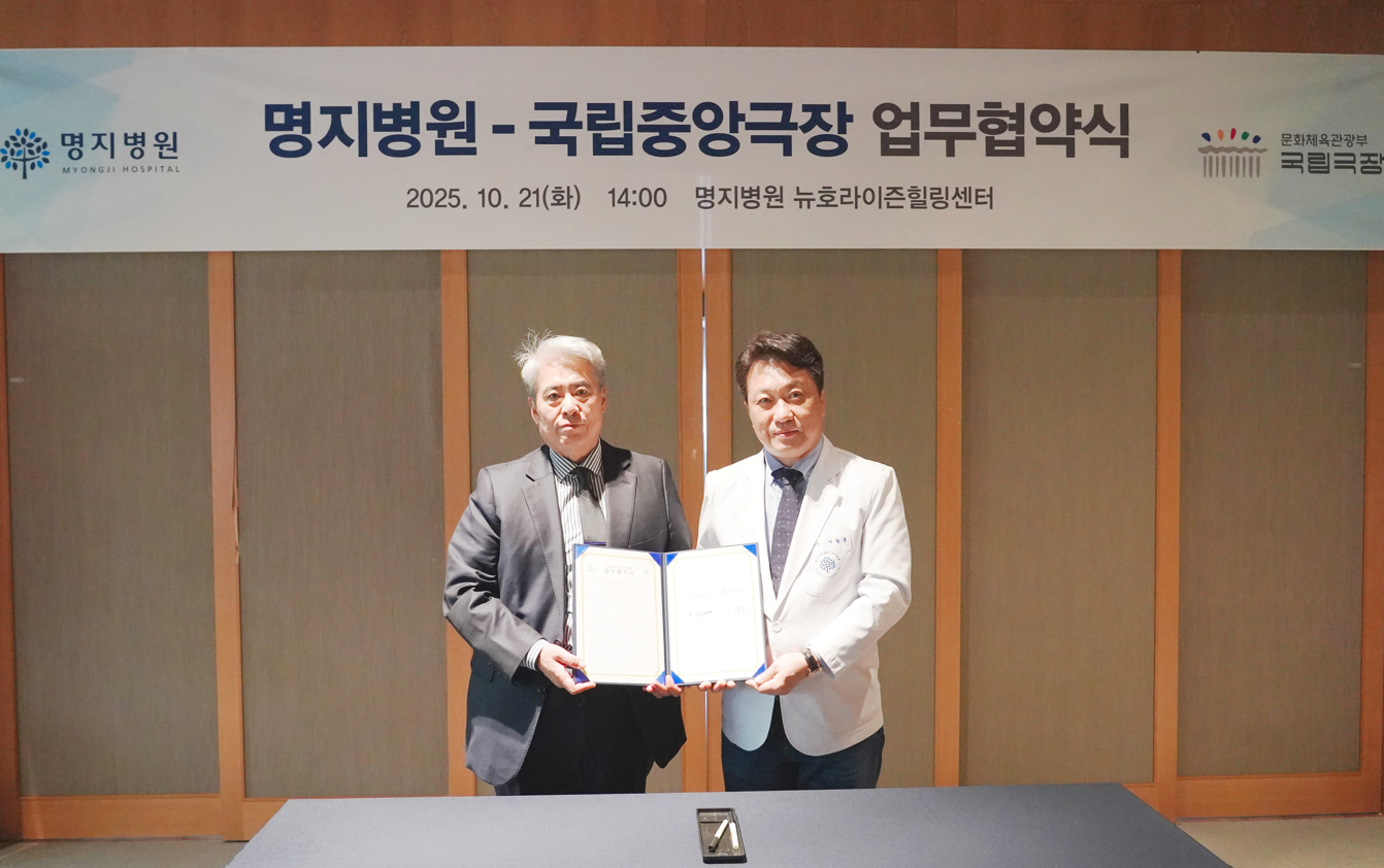 이왕준 이사장은 “명지병원은 권역응급의료센터를 갖춘 경기 서북부 거점병원으로, 부상이 잦은 예술단원들에게 정형·재활·응급 분야에서 가진 우수한 진료 역량은 큰 도움 될 것”이라며, “국립중앙극장의 든든한 주치의 병원으로서 다양한 건강 프로그램을 지원하겠다”고 말했다.
