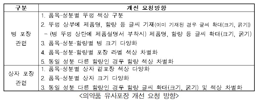 이번 개선 요구는 이밖에도 의약품의 안전한 사용 환경을 저해하고 국민을 안전사고에 노출시키는 원인이 된다는 민원이 약국은 물론 환자로부터 지속되고 있는 데 따른 후속 조치다.