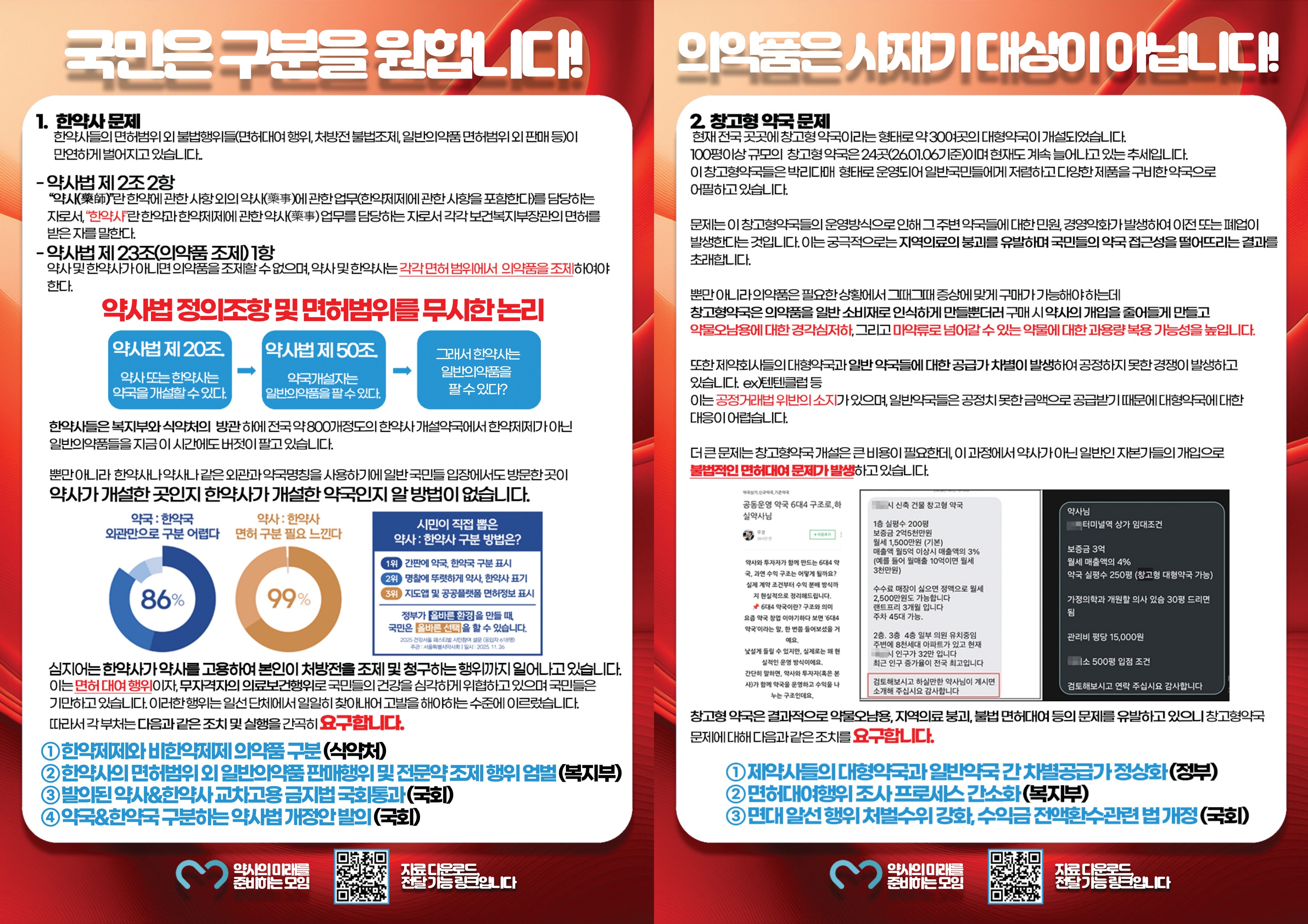 이번 자료는 △한약사 면허범위 외 행위 차단 △기형적 창고형 약국에 대한 제도적 규제 강화 등 최근 약사 직능과 직결된 핵심 현안을 중심으로, 집행부의 구체적인 추진 현황을 공개하고 점검해야 한다는 취지를 담았다.