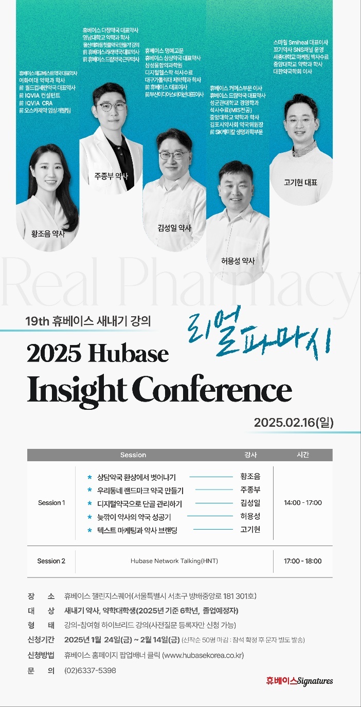 약국체인 휴베이스(대표 김현익)가 다음달 16일 '리얼파마시'를 주제로 열아홉 번째 새내기 강의를 개최한다.