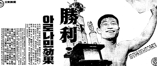 한국최초의 복싱 세계참피언 김기수는 1966년 전국민을 열광시켰다. 일동제약은 종합영양제 아로나민의 광고모델로 김기수선수를 등장 시켜 장안의 화제를 모으기도 했다. 승리의 화신 정열의 화신인 김기수 선수를 모델로 활용한 전략은 당시로서는 매우 기발하면서도 시의적절했다는 평가를 받음과 동시에 매출도 크게 늘어나는 등 두 마리 토끼를 동시에 잡은 격이 됐다.
