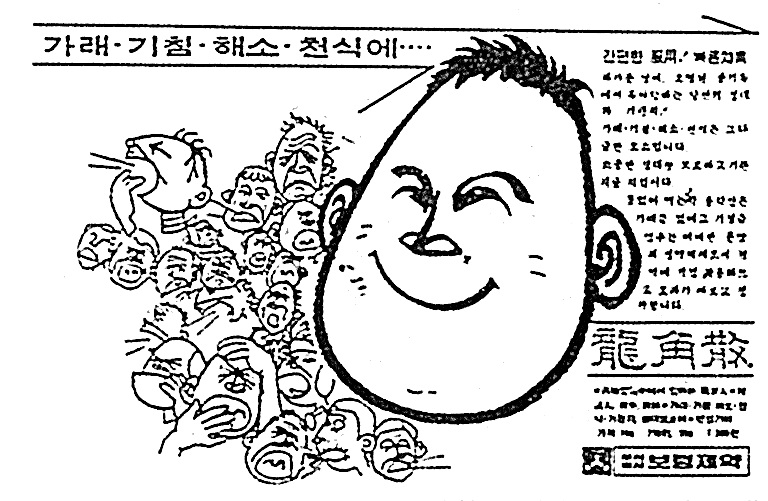 1973년부터 TV전파를 타기 시작해 20여년 계속된 이 카피의 광고를 통해 용각산은 일약 국민적 사랑을 받는 의약품으로 자리매김했다. 제약업계뿐 아니라 광고사(史) 에서도 길이 남는 명카피로 회자되고 있다. 사진은 발매초창기의 신문광고이다.