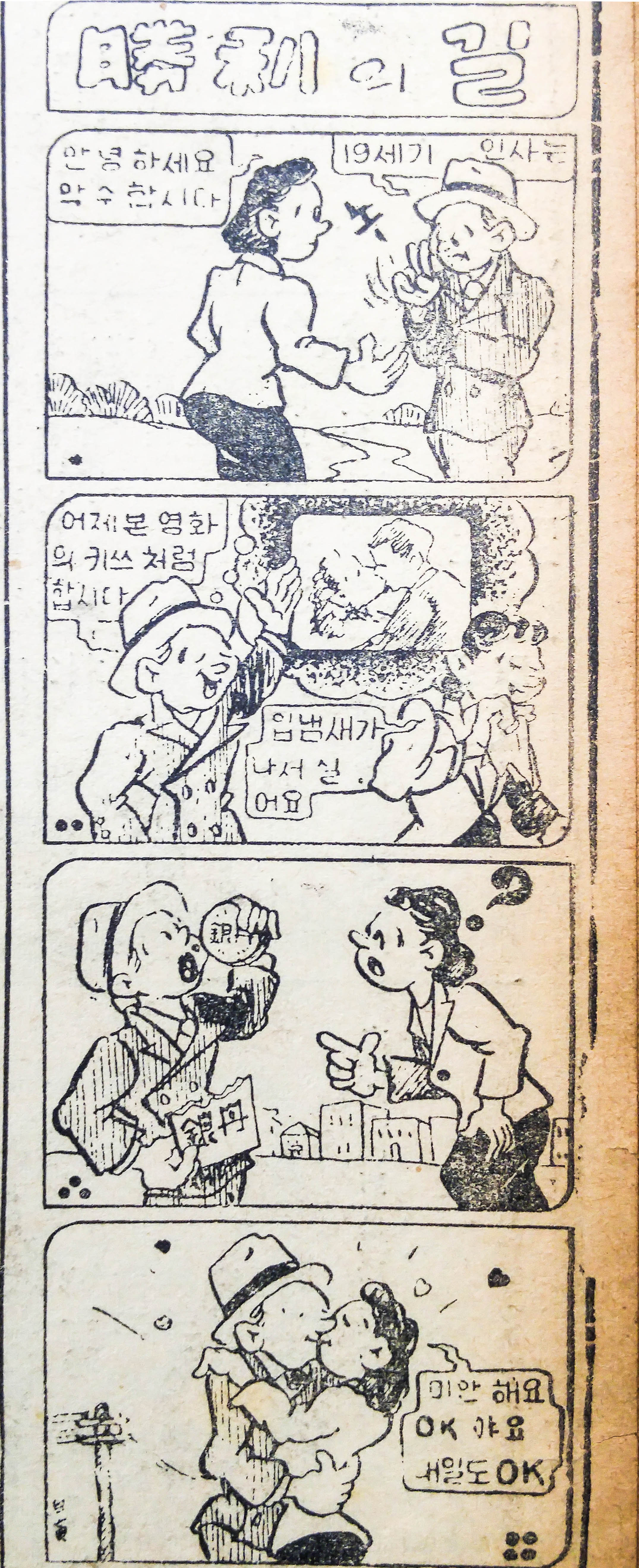 이 광고는 ‘勝利(승리)의 길’이라는 제목의 4단컷 만화를 사용한 참신한 형태의 광고포맷을 유지하며 두 남녀 사이의 대화를 통해 재미있는 상황을 연출해 내고 있다.