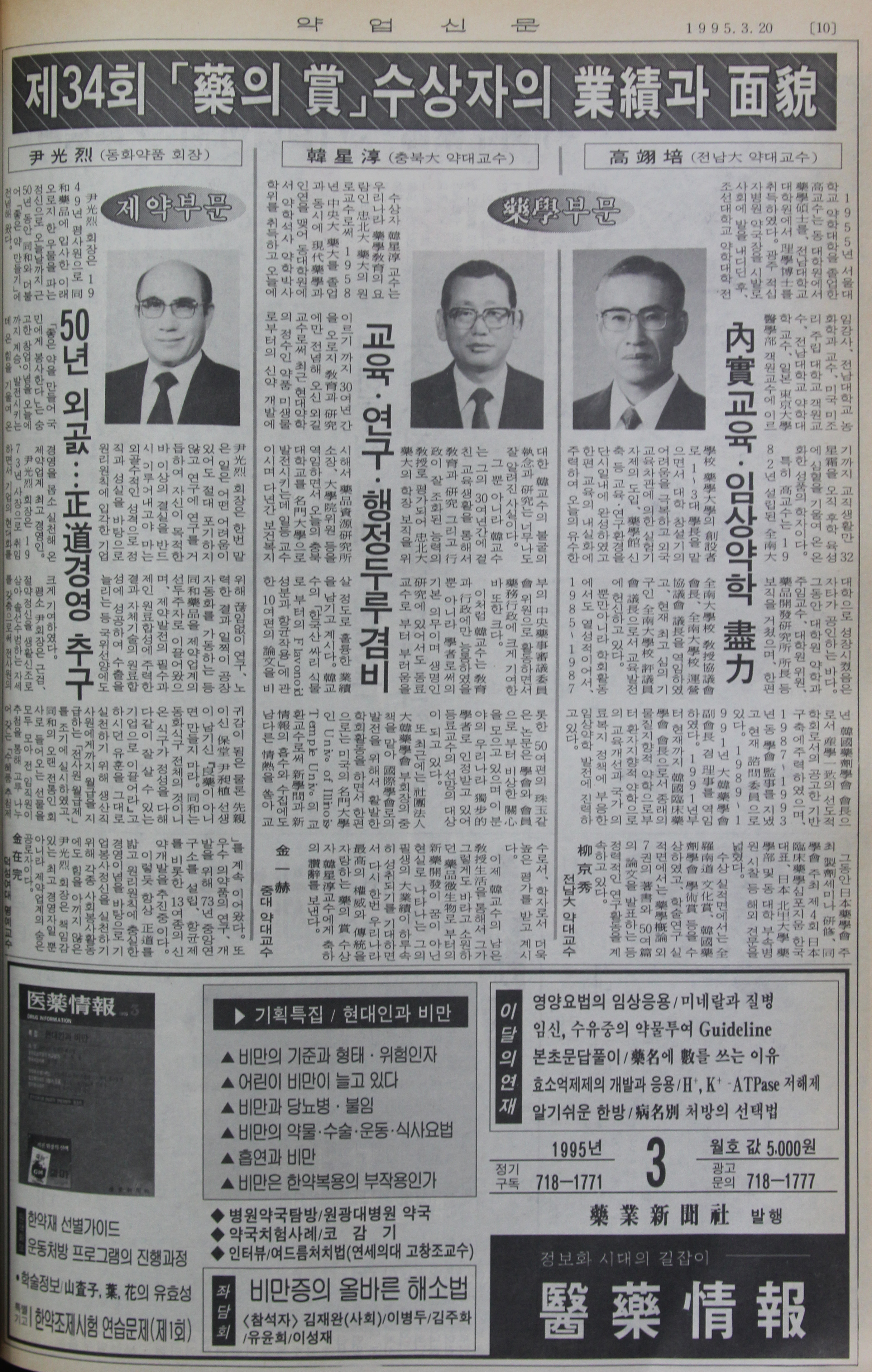 윤광열 회장은 한마디로 책임감 있는 최고 경영자일 뿐 아니라 제약업계 발전을 위해 최선을 다한 숨은 공로자라는 평가를 받기에 조금도 부족함이 없다.