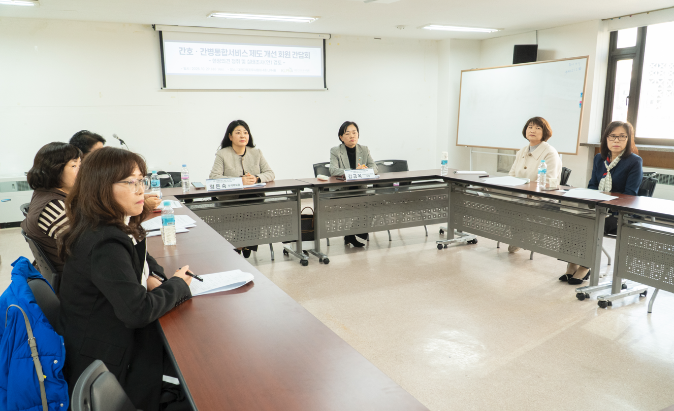 대한간호조무사협회(회장 곽지연)는 지난 10월 29일 협회 LPN홀에서 ‘간호·간병통합서비스 제도개선 회원간담회’를 개최했다. 간담회에는 전국 임상협의회 김금옥 회장 등이 참석한 가운데 간호·간병통합서비스 현장에서 근무하는 간호조무사들이 겪는 문제점을 심도 있게 논의했다.