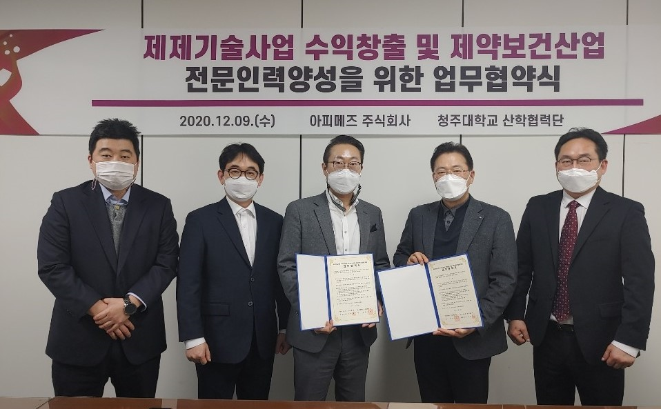 협약을 통해 아피메즈는 의약품개발 및 제제 기술사업 분야에서 청주대학교 산학협력 네트워크를 확보하고, 청주대학교 산학협력단은 대학생 대상 제약보건 전문 교육을 제공받는다. 또 청주대학교는 아피메즈와 원료의약품, 완제의약품, 개량신약 개발 공동연구를 진행하고 재학생 취업 등을 협력할 예정이다.