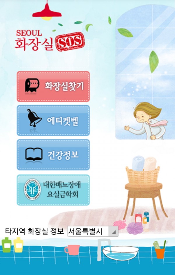 '화장실 SOS'는 스마트 폰의 위치 기반 서비스를 이용해 현재 위치에서 반경 25m~5km 이내에 있는 공중·개방 화장실을 어디서나 쉽게 찾아 주는 모바일 앱이다.