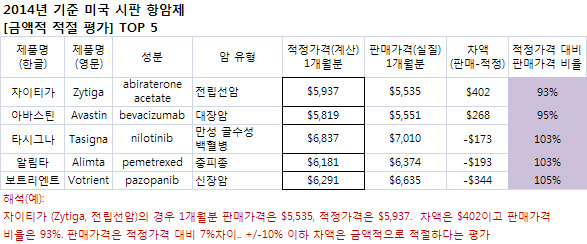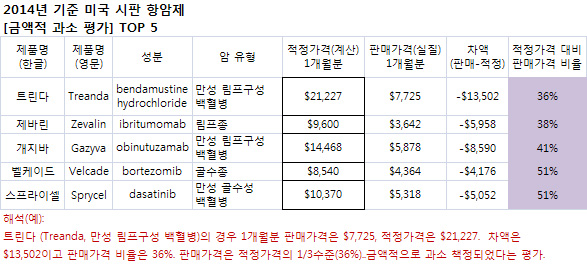 반면 ‘트린다’(만성림프구성백혈병) ’벨케이드‘(골수종) ’스프라이셀‘(만성골수성백혈병) 을 포함한 5개 항암제는 금액적으로 과소 평가된 것으로 분석됐다.