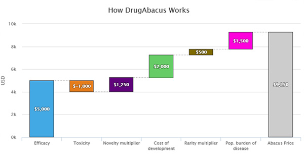 미국 메모리얼 슬로언-케터링 암센터( MSKCC)가 최근 오픈한 미국 판매 항암제의 적정가치 계산 평가 사이트 ‘드럭아바쿠스’(DrugAbacus, www.drugabacus.org)에 따르면 항암제 적정가치(value) 판단은 'Efficacy'(특정 항암제 사용으로 환자가 얻는 혜택은 얼마만큼 인가), 'Toxicity'(특정 항암제의 부작용은 감내하기 얼마나 어려운가), 'Rarity'(특정 항암제는 희귀질환을 위한 것인가),' Population burden'(특정 항암제는 암환자의 수명기간 상실로 인한 공공적 부담-population burden- 해소에 기여하는가)을 고려애햐 한다.