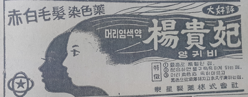 동성제약 머리염색약 양귀비 광고. 1960년대 동성제약의 대표품목이었던 머리염색약 양귀비는 끓이지 않고 바로 물에 타 사용하는 염색약이라는 강점을 앞세워 대중적 인기를 끌어 모았다. 뒤이어 1968년 발매된 칼러염색약 훼미닌의 등장과 함께 국내최초의 신개념 염색약으로 인정받게 된다. 동성제약은 이 두 제품을 앞세워 국내 염색약시장의 최강자로 우뚝 서게 된다.