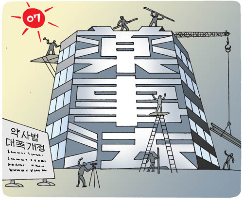 '다 벗고 이옷으로 갈아 입는다. 실시!'