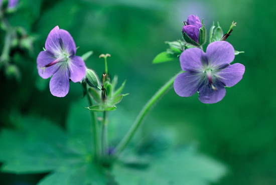 ▲ 덕성여대약대 명예교수/한국사진작가협회회원고산 지대의 숲속이나 풀밭에 자라는 여러해살이풀 중에 털쥐손이라고 하는 식물이 있다. 이 식물은 비교적 늦은 여름인 7-8월에 연한 자주색 꽃을 피우는데 줄기가 30-50 cm 정도 높이로 자라고 갈라진 줄기 끝에 한 송이씩 꽃이 달린다.
