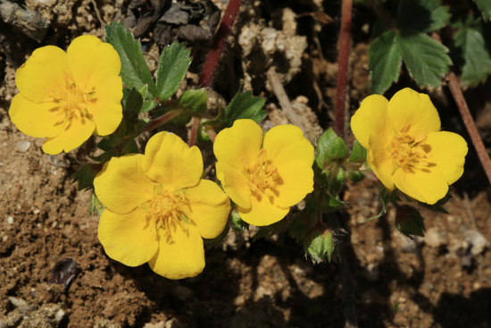 꽃잎은 5장이고 꽃받침과 부꽃받침이 각각 5장이며 수술은 20 여개로 다수이고 중심에 여러 개의 암술이 모여 있고 꽃 밥이 달린 수술대는 암술대 보다는 길다. 꽃잎 둘레의 가운데 부분이 약간 안쪽으로 오목하게 패어 들어가 있다. 꽃잎, 수술, 암술 모두 노란색이다.