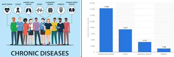 <82> 희망의 약업생태계: 미국의 복합만성질환 관리체계미국에서 만성질환은 상당한 건강 및 경제적 비용을 초래한다. 이러한 질병을 예방하고 관리하기 위한 효과적인 개입은 상당한 건강 및 경제적 이점을 제공한다. 심장병과 뇌졸중은 미국인을 죽이는 최고의 원인이며 매년 88만명 이상의 미국인이 심장병이나 뇌졸중으로 사망한다. 한편 매년 1만명 이상이 암 진단을 받고 거의 7만명이 암으로 사망하므로 두 번째로 큰 사망 원인이다. 게다가 3천796만명 이상의 당뇨병을 가지고 있으며, 약 2억명의 성인이 당뇨병 전단계...