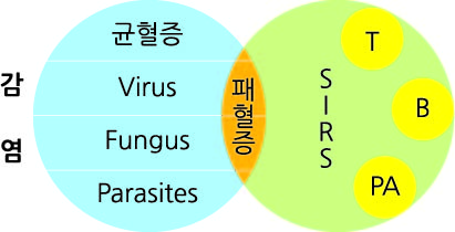 균혈증 감염과 동시에 환자가 SIRS 증상을 보이면 이를 패혈증이라 한다. 이때 폐혈증 환자의 혈압이 빠른 속도로 내려가고 혈류의 감소로 장기 기관 손상이 시작되면 이를 패혈증 쇼크라고 진단 한다.