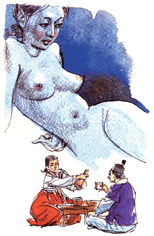 벽계수의 첫날밤 욕망은 진이의 잦은 화장실의 드나듦으로 끝내 불발되었다. 하지만 벽계수는 불만 보다는 만족한 표정이다. 청사초롱의 불빛에 천하미색 진이의 알몸을 마음껏 볼 수 있다는 것은 천재일우의 기회가 아니고서야 즐길 수 없는 장관이 아닐까?