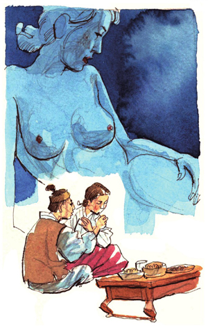 불덩이 같은 아침 해가 불끈 솟아오를 때 진이와 이생은 다정한 부부모양 두 손을 꼭 잡고 천왕봉(天王峯)에 올랐다. 곱게 물든 단풍에 천지사방이 불속처럼 뜨겁게 아름답다. 진이는 천왕봉에 오르자 태양을 향해 삼배하며 역시 어머니의 극락왕생을 빌었다.