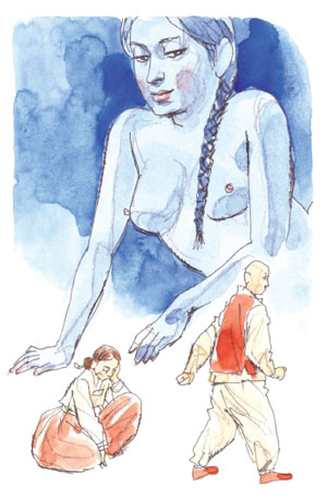 진이는 자신의 몸뚱이를 여행의 무기로 생각하고 있다. 돈이 떨어지면 이 절 저 암자를 찾아 구걸을 하고 그것이 안 되면 몸을 달라면 주려는 속내도 가졌다. 그런 생각까지 하니 무서울...