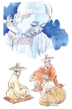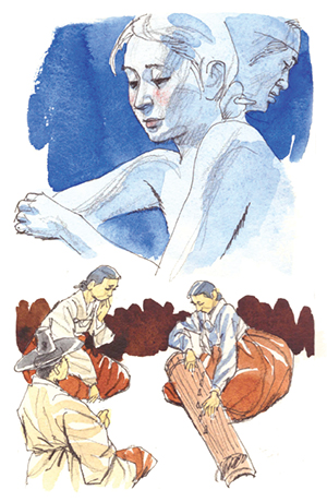 거문고 선율에 맞춰 자동선의 춤은 선녀 같다. 두 사내는 술잔을 든 채 입을 딱 벌리고 자동선의 춤사위에 넋을 잃었다. 제일청의 거문고 솜씨도 뛰어났다. 지금은 제일청이 퇴기로 청교방 거리 뒷전에 물러나 있으나 10년여 전만 해도 송도 한량들이 줄을 섰다.