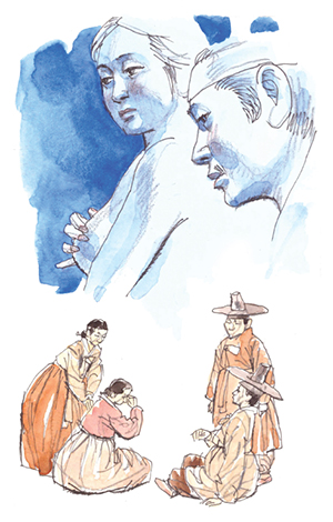 호박 관자를 받고 마음을 굳혔다. 비록 양가 부모와 친척들을 모셔 놓은 자리가 아니더라도 조촐히 결혼식을 올린 뒤 초야를 치르려는 속내다. 그렇게라도 해야 18년 동안을 고이 간직했던 정조를 아낌없이 줄 수 있어서다.