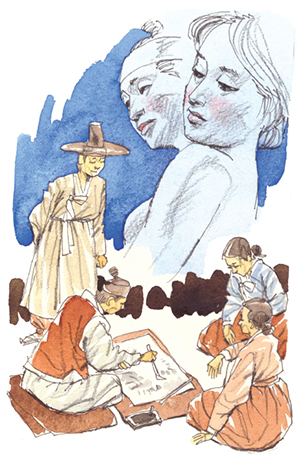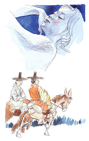 하늘엔 뭉게구름이 이따금씩 쪽빛 하늘에서 뱃놀이를 하듯 오락가락하며 지루한 여름 한낮을 더욱 여유롭게 만들고 있다. “영천군 나리, 저 아름다운 개성을 한 폭의 그림으로 그리면 어떠하신지요?” 술잔이 두어 순배 돌자 사가정이 영천군을 바라보며 정적을 깼다. 소나무 그늘에서 술잔을 기우리며 처음으로 말문을 열었다.