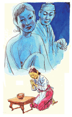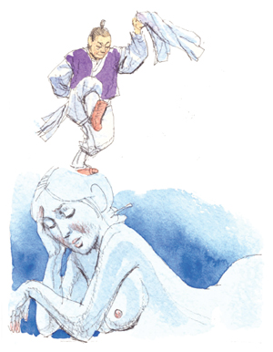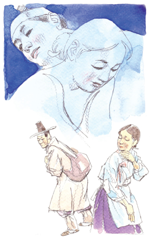 화촉동방보다 더 뜨거웠던 방은 동창이 밝았는데도 인기척이 없다. 삼의당과 하립의 방이다. 며칠 전에 한양에서 내려와 오늘은 다시 산사로 들어가기 위해 끔찍이 사랑한 삼의당과 헤어져야 하는 날이 밝았다. 삼의당은 부부관계를 하고 남편이 잠들자 바람처럼 방을 빠져 나왔다. 남편이 몇 달을 한양에서 지낼 때 입을 옷 등을 준비가 덜 되어 마무리를 하기 위해서다.