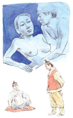 진이도 싫지 않았다. 마음에 드는 사내의 살 내음을 맡은 지 얼마만인가? 한양에도 송도에서도 진이가 마음만 먹으면 사내는 굴비를 꿰듯 꿸 수 있으나 그녀는 화담 서경덕 같은 사내를 찾고 있는 것이다.