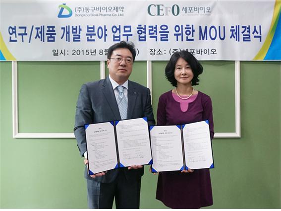 ㈜동구바이오제약(대표 조용준)과 ㈜세포바이오(대표 박현숙)는 8월 7일 '줄기세포 관련 R&D 역량' 강화를 위한 포괄적 업무협약을 체결했다.