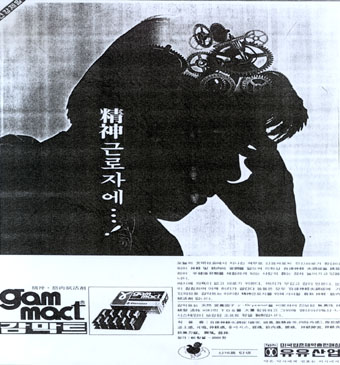 1972년 유유산업 정신·근육부활제 감막트 광고. 맞물려 돌아가는 시계 태엽으로 이 시대 정신근로자들의 스트레스가 잘 표현돼있다. 30여년이 지난 지금, 더 많은 정보와 복잡해지는 사회 구조의 현대사회를 살아가는 사람들이 겪고 있는 스트레스는 어떤 이미지로 표현이 가능할까...