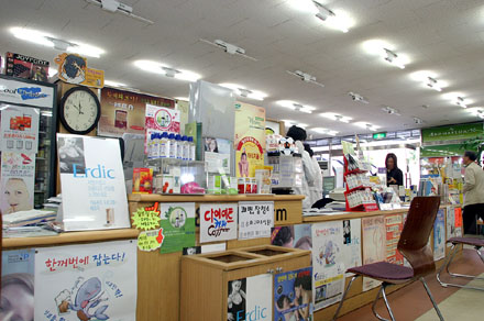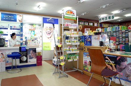 약국 내부는 일반의약품은 별도의 진열장에 오픈 해 놓았으며, 건강기능식품 및 기능성화장품은 별도 매장으로 운영하는 경영을 하고 있다.