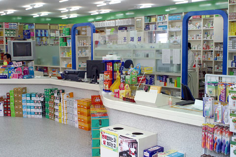 시장통에 위치한 30평 규모의 허 약국(약사 허규)은 전체적으로 정갈한 흰색 톤에 천장 주위에 두른 녹색 띠가 마치 병원과 같은 건전한 분위기를 연출하고 있다.